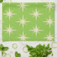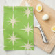 This is elegant mid century white atomic starbursts on lime green background. It's great looking kitchen towel for women who love retro designs
