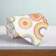 Retro flair meets modern sophistication. This mid-century modern tie features a dynamic pattern of concentric circles in various sizes, playfully arranged in a warm, autumn-inspired palette. Rich hues of burnt orange, mustard yellow, deep burgundy, and earthy brown pop against a sleek cream-coloured background, creating a bold yet refined statement.