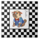 Retro B&W chequerboard, hipster pug, personalised Tile
