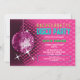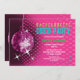 © Socialite Designs Inc. Celebrate the bride-to-be bachelorette party by sending out these fun pink disco ball party invitations. Easily customise the text for your event by replacing the template text. Design incorporates a magenta disco ball, pink background with reflections and starbursts that can be moved and resized. The text is made to look like neon lights.