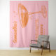 personalised retro bachelorette party tapestry in in bright pink and orange with a cocktail glass is perfect as a bachelorette party photo backdrop. Celebrate your bridal shower in style with the perfect cocktail party theme in bold pink and orange, the perfect theme for the nostalgic vintage 70s bride and her bridesmaids.