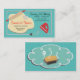 Retro inspired bakery and cafe business card with rolled dough and rolling pin.  Framed by the red mixer's cord.