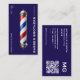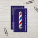 Retro Barber Pole Navy Barbershop Modern Business Card