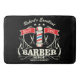 Barbers and stylists will appreciate this old fashioned and retro style Barbershop work floor mat. Place at your work station and show off your style. Features an old fashioned stripe barber pole, scissors, razors. Have fun creating a monogram gift for your favourite barber.