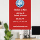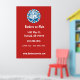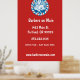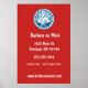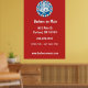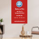 Stylish wall poster features a red white and blue retro style barbershop badge on red background. has a modern look and can be a great marketing tool for your barbershop or other mens' grooming business. Customise with company details