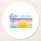 Retro Beach Aruba Sunset Round Paper Coaster