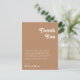 This retro beach | brown table thank you card is perfect for your simple vintage, colourful tropical boho summer wedding. Its unique bohemian mid-century font gives this design a classic minimalist groovy hippie vibe. Suppose you're looking for a design that features bright, rustic coastal ocean colours for your creative 70's destination beach wedding. In that case, this product, and its coordinating wedding collection, are what you're looking for. Feel free to change the colour add your own artwork, graphics, or photos. If you have any questions about the design of this product, please feel free to reach out to us!