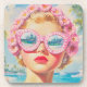 Retro Beach Girl with Floral Sunglasses Coaster