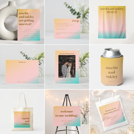 Retro Beach Vibes Pastel Gradient WeddingDesigned by Opal Ellery