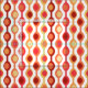 A groovy take on 1960’s and 1970’s design, this fun pattern in bright orange and yellow colours is made up of elongated bead-like shapes set at intervals along straight lines.
