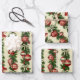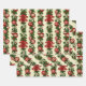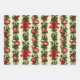 This Christmas wrapping paper features a repeating pattern of classic holiday decorations with a distinctly vintage aesthetic, set against a slighty aged off-white background.