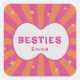 Retro Besties Pink & Orange Sunburst Personalized Square Sticker