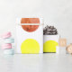 This cool retro design features large grungy distressed polka dots in yellow and shades of orange brown and red, on a white background.
