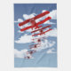 Vintage biplane art reminiscent of the twenties, thirties, forties, retro art. Formation flight of biplanes in the bright blue sky.