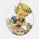 Retro Birthday Girl Cake Cat Children Artwork Ceramic Tree Decoration