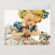 Retro Birthday Girl Cake Cat Children Artwork Postcard