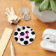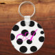Did you love the poodle skirt look? The whimsy of black and pink and polka dots? Well we have a cute little key chain, for you, that's white with black polka dots and has a customisable pink script monogram. Fun, and makes a nice little gift too.