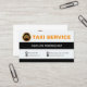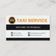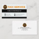 A simple columnar design. Black and white. At the top white column is the faux gold logo of a taxi cab with the slogan option "Taxi Service". In the second black column rest your prestigious name. Below this, the white column has all the contact details in their respective buttons.