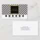 Coordinates with the Retro Black and White Pattern Glam Gold Name Logo Business Card Template by 1201AM. A faux metallic gold framed black box containing your name or business name really stands out on the optical black and white pattern of this customisable salon loyalty punch card. Update the promotion to reflect your desired offering. © 1201AM CREATIVE