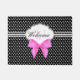 Retro black and white polka dot pink bow monogram doormat