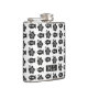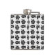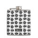 Tiki black and white pattern with flowers and fish motif on personalised hip flask.