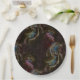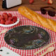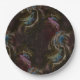 Atomic swirl, 50s space age, mid century modern retro pattern. Black with purple, blue, yellow colour swirls.