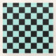 Retro Black Blue Checks Chequerboard Pattern Glass Coaster