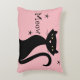 Pillow with a 1950s black cat with black stars with a "baby boomer pink" background.