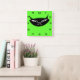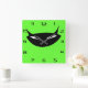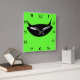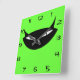 Retro modern style black cat face clock in midcentury style with numbers in cool font. This cool cat looks a little playful and a little mischievous. Shown on retro lime green but you can change the background color if you like.