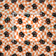 This vintage-inspired pattern features charming black cat faces with large, wide eyes and open mouths, giving them an expression of surprise or excitement. The cats are set against a vibrant, retro orange and cream chequered background with a wavy, distorted effect, evoking a sense of playful movement. Small black stars are scattered throughout the design, adding an extra element of whimsy and nostalgia. The combination of the classic Halloween colours and the bold, stylised cat faces creates a fun, slightly spooky aesthetic that harkens back to mid-century vintage design.