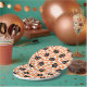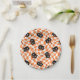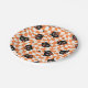 This vintage-inspired pattern features charming black cat faces with large, wide eyes and open mouths, giving them an expression of surprise or excitement. The cats are set against a vibrant, retro orange and cream chequered background with a wavy, distorted effect, evoking a sense of playful movement. Small black stars are scattered throughout the design, adding an extra element of whimsy and nostalgia. The combination of the classic Halloween colours and the bold, stylised cat faces creates a fun, slightly spooky aesthetic that harkens back to mid-century vintage design.