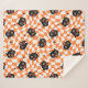 Retro Black Cat Orange Check Pattern Sherpa Blanket