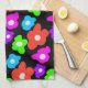 Retro Black Rainbow Colourful Flowers Pattern Tea Towel