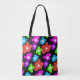 Retro Black Rainbow Colourful Flowers Pattern Tote Bag