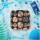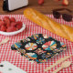 Retro Black Rainbow geometric Flowers Pattern Paper Plate