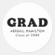 Custom graduation stickers featuring "Grad" in bold black retro lettering with a white background (editable color). Personalize the white and black graduation stickers by adding the graduate's name and graduation year. The personalized graduation stickers are perfect to use for sealing envelopes, graduation favor bags, etc.