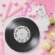 A classic black vinyl LP record with a blank label and shiny gleam for a party.