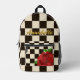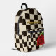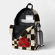 Retro Black & White Chessboard Check Red Rose Printed Backpack