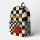 Captivating Black & White Chessboard check pattern with retro touch Red Rose Backpack—where elegance meets individuality. This unique design blends classic sophistication with a bold, personalised twist. The chessboard pattern in black and white signifies strategy and intellect, setting the stage for a statement piece that embodies both style and depth.