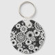 Retro black white flowers Keychain