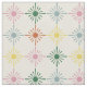 Craft charming home decor and apparel with this fabric and its vintage style floral pattern. Geometric depictions of daisies in muted shades of light blue, dark green, pink, rust orange and yellow are set against a sand or beige coloured background for a simple, retro look.