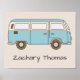 This cute poster features a classic vintage camper van bus in blue and cream. Personalise with your choice of name or special text.