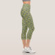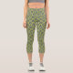Retro Blue & Black Daisies on Green Floral Pattern Capri Leggings