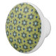 Retro Blue & Black Daisies on Green Floral Pattern Ceramic Knob