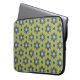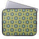 Retro Blue & Black Daisies on Green Floral Pattern Laptop Sleeve