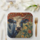 Retro Blue cow in sunflower garden Paper Plate