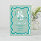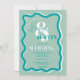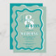 Retro blue curve squiggle wavy wedding photo invitation