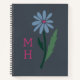 Retro Blue Floral Pink Monogram Slate Gray Notebook