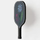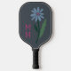 Retro Blue Floral Pink Monogram Slate Gray Pickleball Paddle
