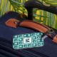 Retro squares pattern in shades of blue with optional monogram.
